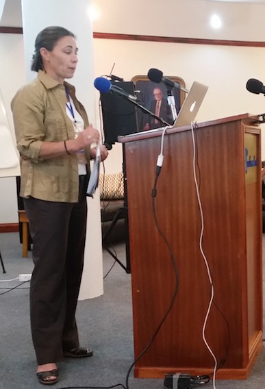 Discussing the interface between science and policy making, Dr. Claire Morrall, St. George's University, Grenada, emphasized the importance of the ocean area, which is much larger than the land space for Caribbean SIDS. There are some links between academics, governments, statutory bodies, NGOs, and regional and international agencies, but much of the science advice is provided by “parachute scientists” brought in on a case-by-case basis. She saw the need for increased partnering with local scientists. Scientists often have limited understanding of the policy process, and knowledge transfer between science and policy making is currently not as valued in society as science and research by themselves are. She also saw a challenge in a distrust of science and a rejection of science that has some level of “inconvenience”. Dr Morrall used a number of examples from the Grenadines network of marine protected areas to illustrate her points.